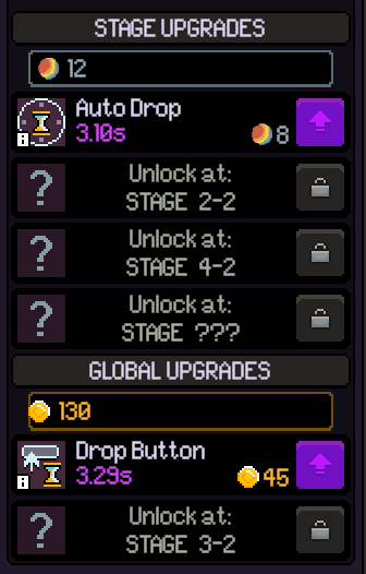 - Global Upgrades that don't reset until prestige! As well as Stage upgrades that reset every stage.